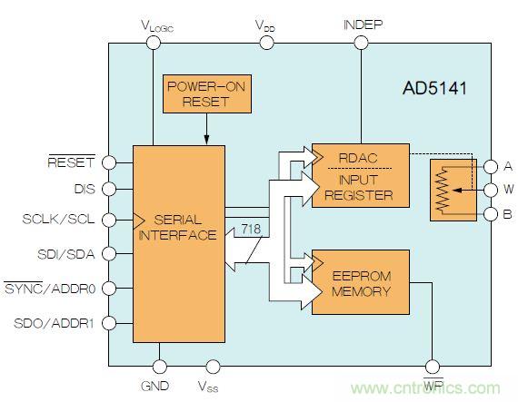 ADI公司的AD5141 digiPOT克服了其他数字电位计的某些问题。它提供: