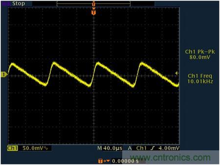 以安森美NCV4949来讲,在其输出端加一个10uF的陶瓷电容,在电容后端测量到的瞬态响应如图(AC mode):