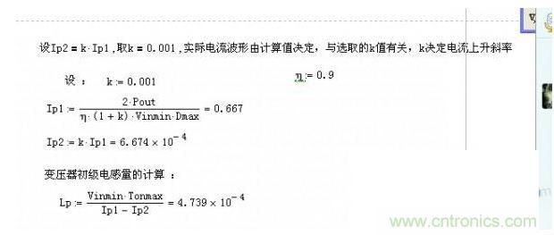 K值就是上面说的电流连续比上面计算书定义的Ip2是电流上升前沿Ip1是电流上升后沿。所以当K=0的时候变压器是工作在临界模式以下的为防止计算出错一般习惯取0.001.