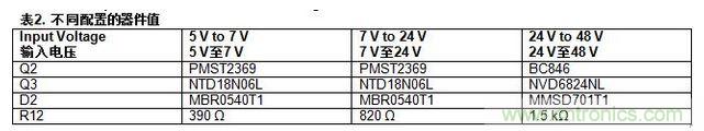 表2总结了针对不同输入电压配置而选择的替代器件。