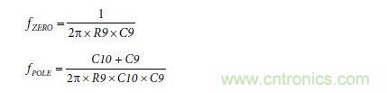 在该特定设计中,补偿网络设置为:R9 = 15 kΩ,C9 = 2.2 nF,C10 = 1 nF。