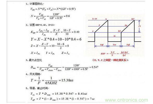 3、原边电流的计算,其实是参考了《开关电源手册》,见p156--p180,110W反激变压器设计,原文中定义的原边电流,IP2=3*IP1,即KRP=0.66。本文中用X、Y、Z来描述原边电流,即固定X=10,Y为任意值,KRP也就为任意值。