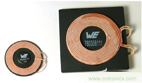线圈的尺寸可减小到一个点,但仍需传输功率并与发射器进行通信。典型的线圈结构是一种在屏蔽层上用铜线制成的圆形平面线圈。替代配置是PCB或柔性电路线圈。通常情况下,这些替代物可能有更高的直流(DC)电阻(更低的效率),但会非常纤薄,该特性很适合小型低功耗应用。屏蔽层可阻止交流电磁场进入电子器件和电池,这也可提高线圈的性能。