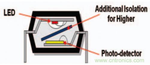隔离不得给整体系统性能带来任何显著的时序不确定性或时序误差。标准光耦合器的传播延迟为微秒级,可能因器件而异,因温度和寿命而异。光耦合器技术在时序性能方面存在一些根本的不足,而现代数字隔离器采用完全不同的运算原则,其速率也更高??梢栽谟兴壑缘那榭鱿略黾庸怦詈掀鞯乃俾?。光耦合器的工作原理是,将来自LED的光发送至一种光学透明的隔离材料,并用另一端的光电二极管检测光。光耦合器的速度与光电二极管检波器的速率以及为其二极管电容充电的时间直接相关。减少传播延迟的一种方法是增加发射的光量。通过提高LED电流,可以使延迟减少2或3倍,但其代价是设备功耗会增加,每个数据通道最高将达50 mW。提高速度的另一种办法是通过使用更薄的隔离栅来减少光传输损耗。为了维持相同的隔离能力,需要增加一层材料,但代价是成本也将增高。更快的光耦合器比标准的低成本光耦合器要贵许多倍。