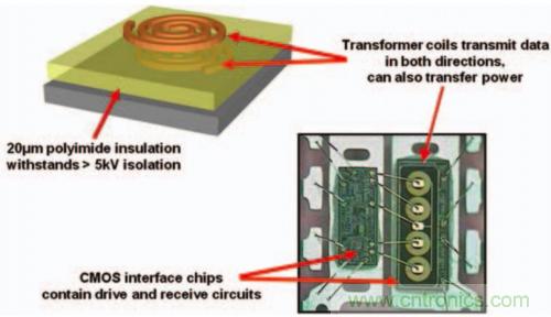 数字隔离器采用晶圆CMOS工艺制造,仅限于常用的晶圆材料。非标准材料会使生产复杂化,导致可制造性变差且成本提高。常用的绝缘材料包括聚合物(如聚酰亚胺PI,它可以旋涂成薄膜)和二氧化硅(SiO2)。二者均具有众所周知的绝缘特性,并且已经在标准半导体工艺中使用多年。聚合物是许多光耦合器的基础,作为高压绝缘体具有悠久的历史。