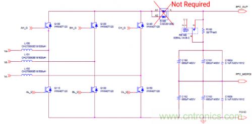 在六管组成三相VIENNA拓扑的PFC,采用全6管SiC的MOSFET,可以省掉快恢复二极管,如下图3所示: