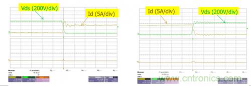 从图4的仿真模型中可以看出,在开通和关断的交越区域非常小,因此损耗非常小,CREE的SiC产品可以实现在通讯电源上的高效、低成本、小体积以及高可靠性的要求。
