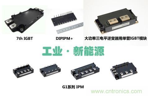 针对伺服驱动器、光伏逆变器等工业市场需求,三菱电机此次重点推介整流逆变制动一体化??镈IPIPM+,G1系列IPM,第7代IGBT以及大功率三电平逆变器用单管IGBT??樗闹植?。凭借良好性能获得市场青睐的第7代IGBT,两种封装方式兼容了现有市场主流产品封装,并采用预涂热界面材料(PC-TIM)有效降低了50%接触热阻。同样备受期待的产品,还有今年全新开发的“G1系列IPM”。它采用第7代 IGBT和FWDi芯片,配备多种额定电流对应广泛用途的工业设备,有助于通用变频器、伺服驱动器、电梯等设备降低损耗、减小体积、提高可靠性。