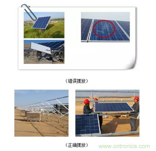 【导读】我们都知道组件在整个光伏系统占据成本最高,同时也是直接影响电站的发电的重要因素。专业的EPC他们对组件的运输、摆放、卸货、倒运、搬运、安装过程都会进行严格控制。今天我们就从组件摆放、二次搬运、组件安装三个小细节来看看如何做好组件的隐裂控制。