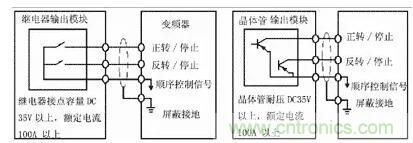 在使用继电器接点时,常常因为接触不良而带来误动作;使用晶体管进行连接时,则需考虑晶体管本身的电压、电流容量等因素,保证系统的可靠性。