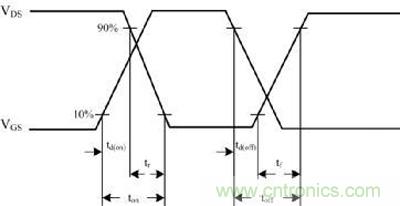 MOS管的损耗由开关损耗和驱动损耗组成,如图1所示:开通延迟时间td(on)、上升时间tr、关断延迟时间td(off)、下降时间tf。