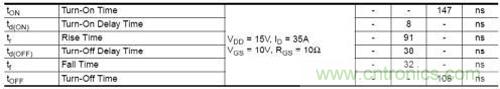 以FAIRCHILD公司的MOS为例,如表1所示:FDD8880开关时间特性表。