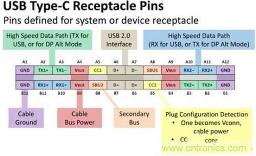 Type-C总计有24个针脚,而USB 3.0接口通常是9到11个,USB 2.0只有4个针脚。针脚的增多并没有导致Type-C接口体积变大,实际上它还缩小了体积(相对标准口来说),满足了移动设备的需求。