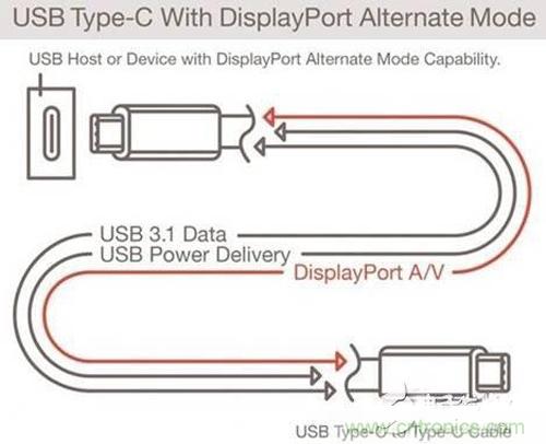 视讯电子标准协会(Video Electronics Standards Association,VESA)宣布DisplayPort的传输影像的技术,支援USB-IF制定的USB 3.1规格中的Type-C,允许Type-C拥有中转音频和视频信号的功能,支持4K分辨率的影像传输。除了 DP 信号以外,USB电力传输(USB Power Delivery)规范2.0中新添的替代模式(Alternate Mode)允许非USB信号通过USB接口进行传输,支持USB Power Delivery 2.0规格,可以高达 100W 的供电能力。