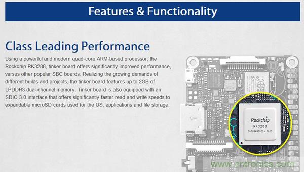 据外媒报道,今年初,华硕已推出了一款搭载Cortex的微型电脑Tinker Board,据介绍,华硕微型电脑Tinker Board搭载了Rockchip RK3288处理器Cortex-A17,主频为1.8GHz,支持4K H.264视频解码、Ethernet传输速度可以达到千兆级别,定价为64.9欧。