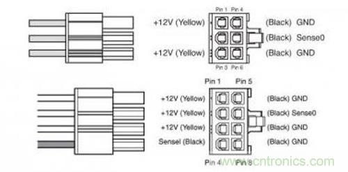 显卡外接供电,有6pin和8pin两种,提供+12V供电