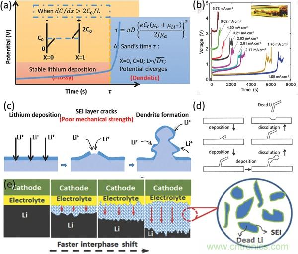 图2.锂金属负极失效机理的不同模型