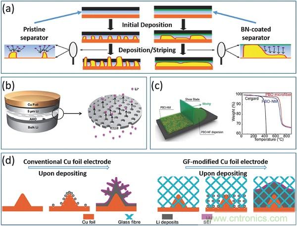 通常,预期LMBs的理想分离器具有良好的润湿性、快速的离子传导性、强的机械强度和操纵锂沉积行为的能力。鉴于电池阻抗、重量、体积等因素,直接功能化分离器比插入额外的?;げ愀茫」芎笳咴谧槌?、结构和性质(机械强度,导电性)等方面具有更多的选择。