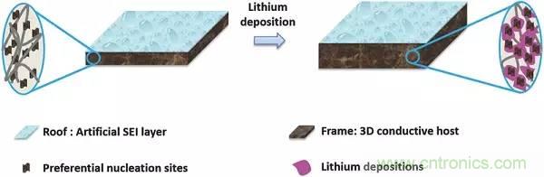 图14.采用3D导电主体作为框架,人造SEI层作为屋顶,为极度活泼的锂建一个房屋