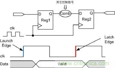 (2)捕获沿(Latch Edge):后记寄存器捕获数据对应的时钟沿,是时序分析的终点。相对于launch Edge通常为一个时钟周期,但不绝对,如多周期。