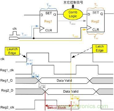 如果建立时间的裕量Setup Stack小于0,则不满足建立时间,也就会产生不稳定态,并通过寄存器传输下去。