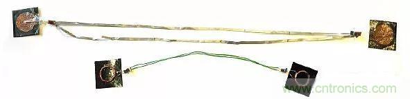 图3:上方是用铜带制作的柔性馈电线圈;下方是早期用24号硬线做的馈电线圈原型。