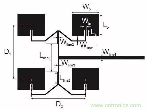 图7:天线版图。天线尺寸可以在前述参考文献中找到。