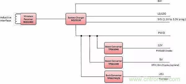 图15:TI可穿戴设备用无线供电解决方案框图。