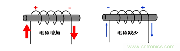 当交流电通过电感时,电流产生的磁场将其他的绕线切隔,因而产生反向电压,从而阻碍电流变化。反之当电流减少时,则向电流增加的方向产生。