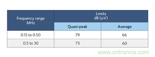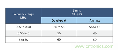 图 1:CISPR 22 标准 B 类传导 EMI 规范。
