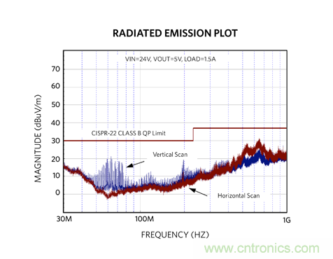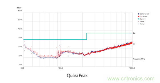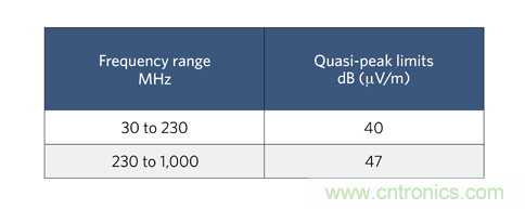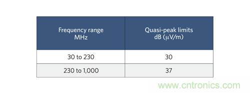 图 3:CISPR 22 标准 B 类辐射 EMI 规范。