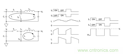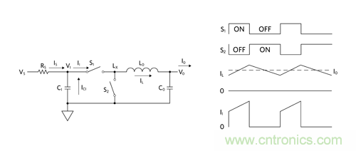 图 5:Buck 调节器原理简图及其工作波形传导 EMI。