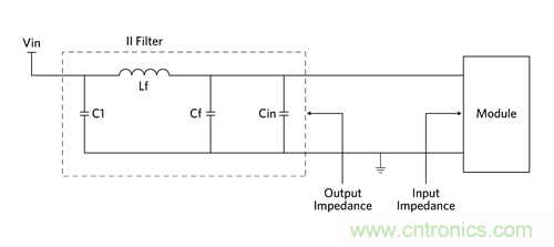 按照输出阻抗比 RIN 小 10db 或更小来设计 EMI 滤波器:增加输入滤波器会影响 DC-DC 转换器的性能。为最大程度减小这种影响,在最高达转换器穿越频率的所有频率下,滤波器的输出阻抗必须小于电源转换器的输入阻抗。
