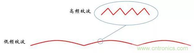 ?高频纹波:来自开关切换的周期,开关电源不是线性连续输出能量,而是 将能量组成一个个包来传输,因此会存在和开关周期相对应的纹波。
