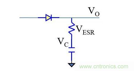 ■ESR是输出高频电压纹波的罪魁祸首,当电容储能和释能时,电流方 向相反,因此输出在VO=VC+VESR,和VO=VC+VESR之间切换,ESR越 大,纹波电压越大。