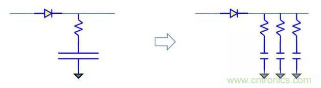 ?可以采用低ESR的电解电容替代普通电容,或者用多个电容并联来替代单 个电容。