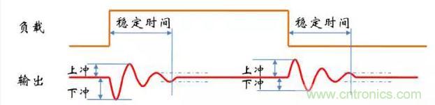?稳定时间是负载开始变化到输出达到能接受的范围内的实际。