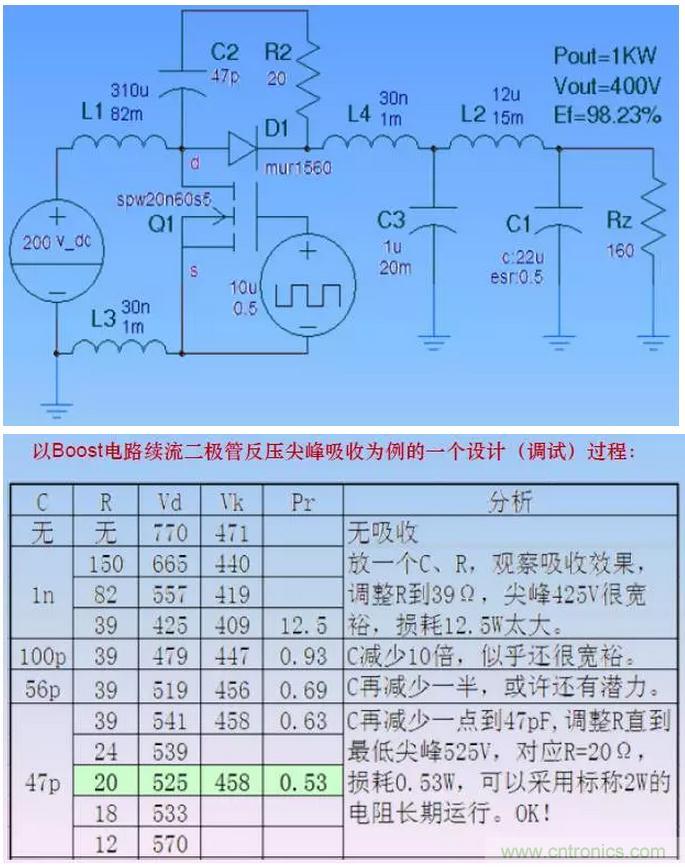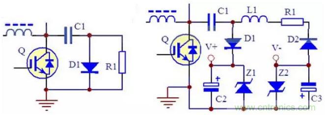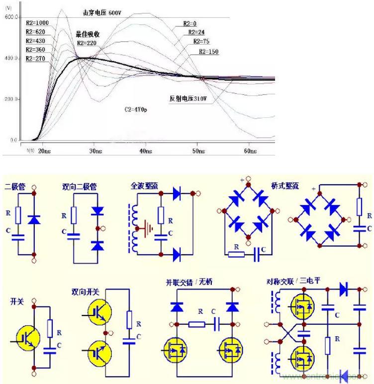 对应一个特定的吸收环境和一个特定大小的电容C,有一个最合适大小的电阻R,形成最大的阻尼、获得最低的电压尖峰。