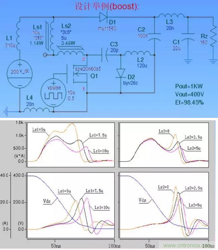 适当的缓冲电感(L3)参数可以大幅度减少开关管损耗,实现高效率。