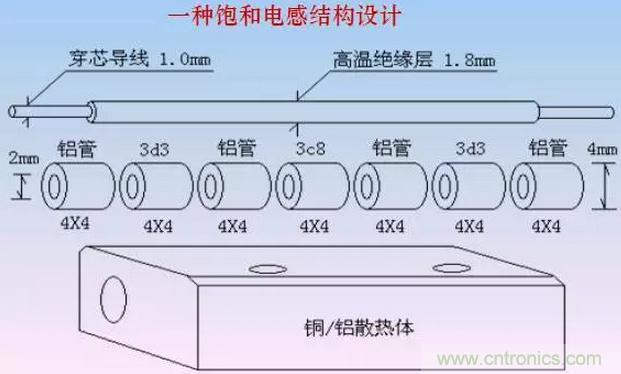 在其他条件相同情况下,相同体积的磁芯的饱和电感缓冲效果大致相当。既然如此,磁芯可以按照最有利于散热的磁路进行设计。比如细长的管状磁芯比环状磁芯、多个小磁芯比集中一个大磁芯、穿心电感比多匝电感显然具有更大的散热表面积。