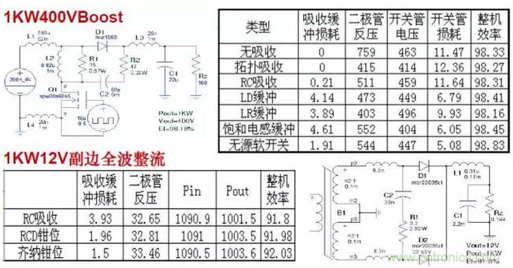 无源无损软开关电路效率明显高于其他缓冲吸收方式,与有源软开关电路效率相差无几。因此只要能够实现无源软开关的电路,可不必采用有源软开关。