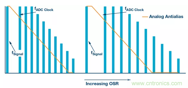 根据经验,采样频率加倍可在原始信号带宽下将信噪比(SNR)提高约3dB。在图1所示的电路中,仍然在FPGA中应用数字滤波,以消除高于目标信号带宽的噪声。原理如图2所示。