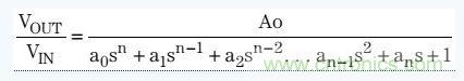 图1所示WEBENCH滤波器设计器的滤波器类型窗口列出了这些参数。DC到截止频率(fc)的频率范围为带通区域。图1中Ao为带通响应量级。使用巴特沃兹(Butterworth)或者贝塞尔(Bessel)滤波器时,带通响应可以为扁平,并且无纹波。相反,一直到截止频率,切比雪夫(Chebyshev)滤波器都有纹波。切比雪夫滤波器的纹波误差量级为2△AMAX。