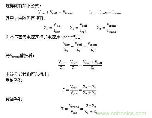 当信号穿越阻抗不连续的点时,会产生反射电压与电流,从而使得分界面两边的电压和电流相等(基尔霍夫定律)。