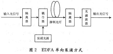图2为单向泵浦方式结构,此外还有反向泵浦,双向泵浦方式结构。