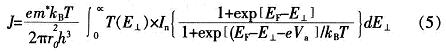 式中:e为电子电荷的大小,m*为GoAs电子的有效质量,kB为玻尔兹曼常数,T为绝对温度,EF为费米能级,E1为入射电子垂直(纵向)能量。