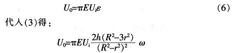 式中:μ为硅材料的泊松比,μ=O.35;R,r,h分别为硅膜片的有效半径,计算半径,厚度;E为硅材料的模量,E=8.7Gpa;P为作用于平膜片上的压力;ω为平膜片的挠度;