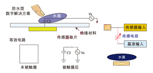 图3:数字触摸方案;在存在水滴时仍具有鲁棒的性能。