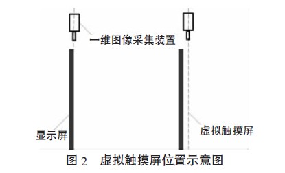 设计了一种虚拟触摸屏系统,其特色在于由图像采集装置获取的一维图像数据来确立用户手指触摸二维虚拟触摸屏上的位置坐标。前提是一维图像采集装置的安装位置,它从根本上解决了大屏幕触摸屏中人体遮挡手指无法识别的问题,且其进行的是一维数据的处理,相比于二维图像处理算法更加简单。