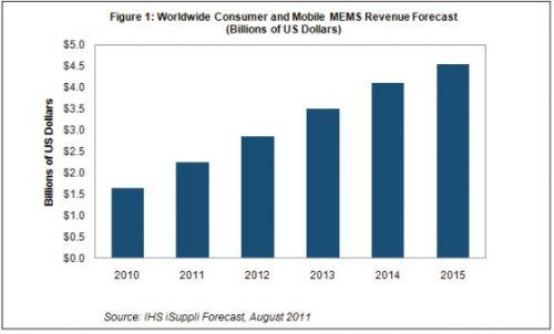 据IHS公司的消费与移动MEMS市场研究报告,微机电系统(MEMS)市场中最大和最有活力的领域是消费与移动器件,通过积极开拓智能手机和平板应用,2011年MEMS市场将再度实现创纪录的增长率。
